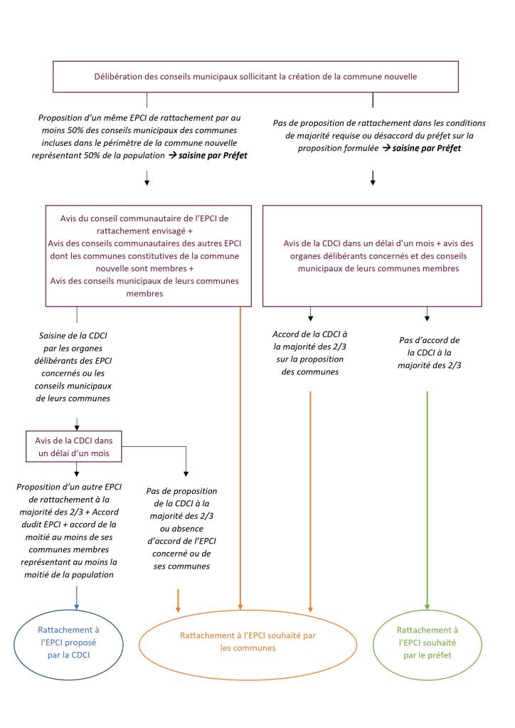 Ce dernier saisit pour avis la CDCI en proposant un autre EPCI à fiscalité propre de rattachement. Cette proposition est ensuite soumise pour avis au conseil communautaire de l’EPCI dont le rattachement de la commune nouvelle est envisagé, aux organes délibérants des EPCI à fiscalité propre dont sont membres les autres communes constitutives de la commune nouvelle et aux conseils municipaux de leurs communes membres.