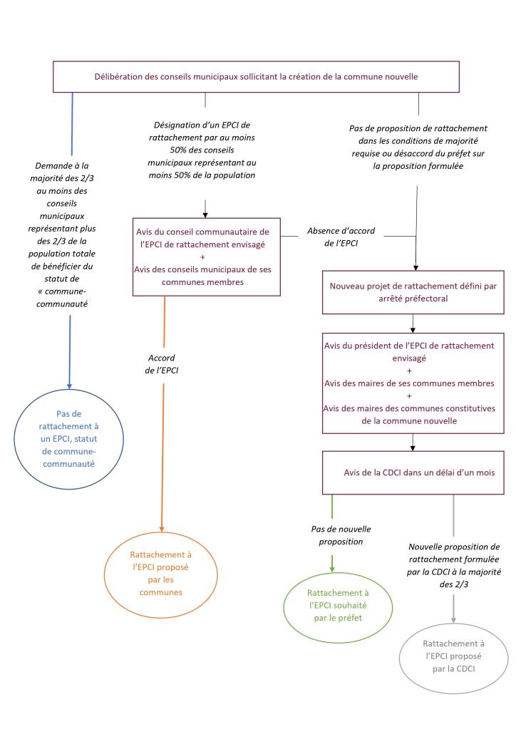 A défaut de formuler une telle demande de « commune-communauté », les communes proposent un nouvel EPCI de rattachement dans les conditions de majorité suivantes : 50% des conseils municipaux représentant 50% de la population totale. Après avis des communes membres dudit EPCI de rattachement et accord de ce dernier, la commune nouvelle pourra être rattaché audit EPCI.
