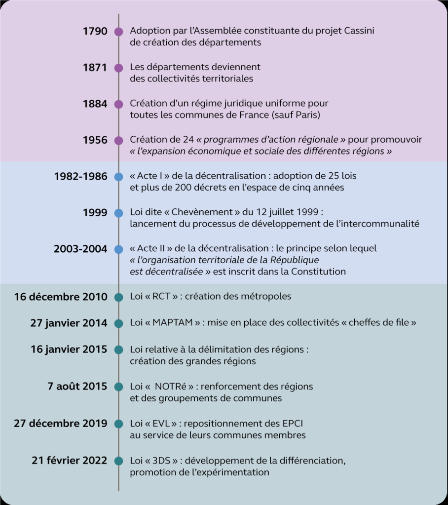 Les grandes étapes de la décentralisation depuis la Révolution (source Cour des Comptes)